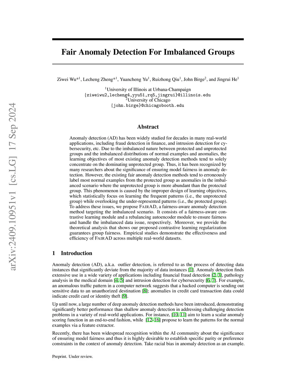 Anomaly detection (AD) has been widely studied for decades in many real-world applications, including fraud detection in finance, and intrusion detection for cybersecurity, etc. Due to the imbalanced nature between protected and unprotected groups and the imbalanced distributions of normal examples and anomalies, the learning objectives of most existing anomaly detection methods tend to solely concentrate on the dominating unprotected group. Thus, it has been recognized by many researchers about the significance of ensuring model fairness in anomaly detection. However, the existing fair anomaly detection methods tend to erroneously label most normal examples from the protected group as anomalies in the imbalanced scenario where the unprotected group is more abundant than the protected group. This phenomenon is caused by the improper design of learning objectives, which statistically focus on learning the frequent patterns (i.e., the unprotected group) while overlooking the under-represented patterns (i.e., the protected group). To address these issues, we propose FairAD, a fairness-aware anomaly detection method targeting the imbalanced scenario. It consists of a fairness-aware contrastive learning module and a rebalancing autoencoder module to ensure fairness and handle the imbalanced data issue, respectively. Moreover, we provide the theoretical analysis that shows our proposed contrastive learning regularization guarantees group fairness. Empirical studies demonstrate the effectiveness and efficiency of FairAD across multiple real-world datasets.