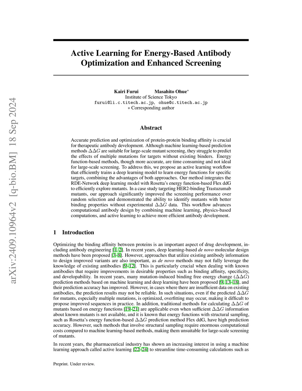Accurate prediction and optimization of protein-protein binding affinity is crucial for therapeutic antibody development. Although machine learning-based prediction methods are suitable for large-scale mutant screening, they struggle to predict the effects of multiple mutations for targets without existing binders. Energy function-based methods, though more accurate, are time consuming and not ideal for large-scale screening. To address this, we propose an active learning workflow that efficiently trains a deep learning model to learn energy functions for specific targets, combining the advantages of both approaches. Our method integrates the RDE-Network deep learning model with Rosetta's energy function-based Flex ddG to efficiently explore mutants. In a case study targeting HER2-binding Trastuzumab mutants, our approach significantly improved the screening performance over random selection and demonstrated the ability to identify mutants with better binding properties without experimental data. This workflow advances computational antibody design by combining machine learning, physics-based computations, and active learning to achieve more efficient antibody development.