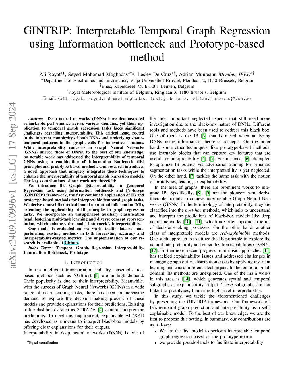 GINTRIP: Interpretable Temporal Graph Regression using Information bottleneck and Prototype-based method