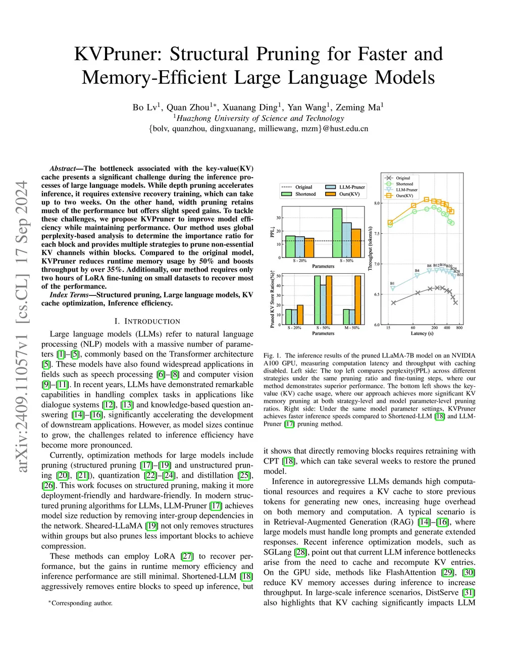 KVPruner: Structural Pruning for Faster and Memory-Efficient Large