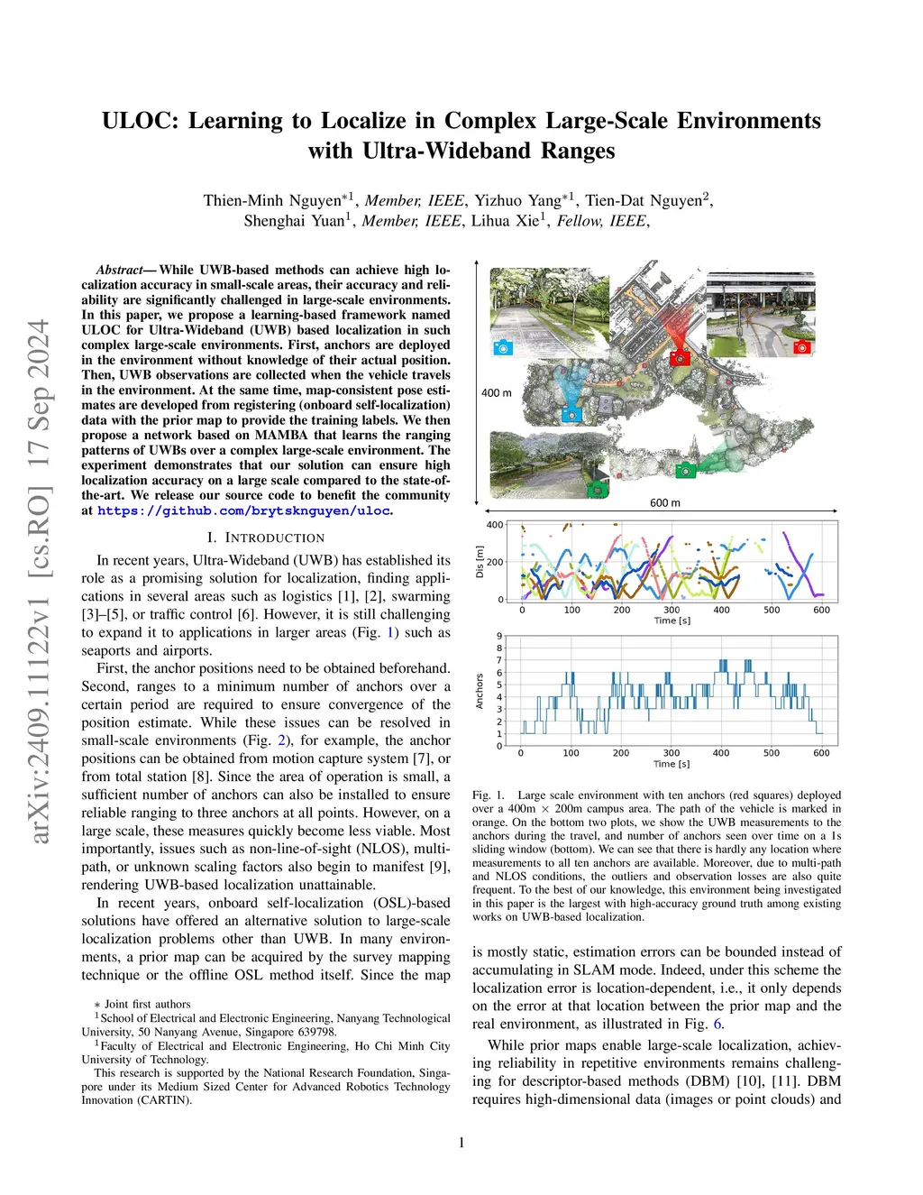 While UWB-based methods can achieve high localization accuracy in small-scale areas, their accuracy and reliability are significantly challenged in large-scale environments. In this paper, we propose a learning-based framework named ULOC for Ultra-Wideband (UWB) based localization in such complex large-scale environments. First, anchors are deployed in the environment without knowledge of their actual position. Then, UWB observations are collected when the vehicle travels in the environment. At the same time, map-consistent pose estimates are developed from registering (onboard self-localization) data with the prior map to provide the training labels. We then propose a network based on MAMBA that learns the ranging patterns of UWBs over a complex large-scale environment. The experiment demonstrates that our solution can ensure high localization accuracy on a large scale compared to the state-of-the-art. We release our source code to benefit the community at https://github.com/brytsknguyen/uloc.