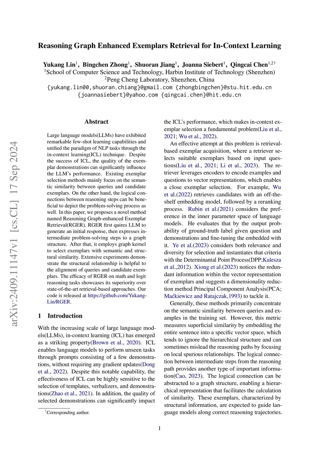 Reasoning Graph Enhanced Exemplars Retrieval for In-Context Learning