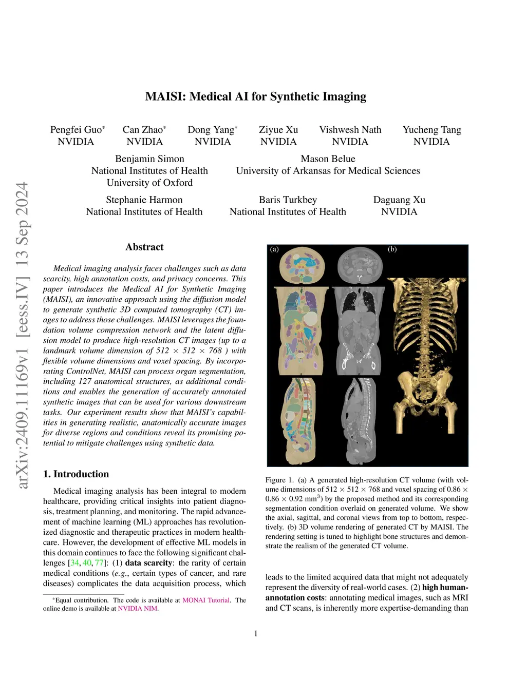 MAISI: Medical AI for Synthetic Imaging