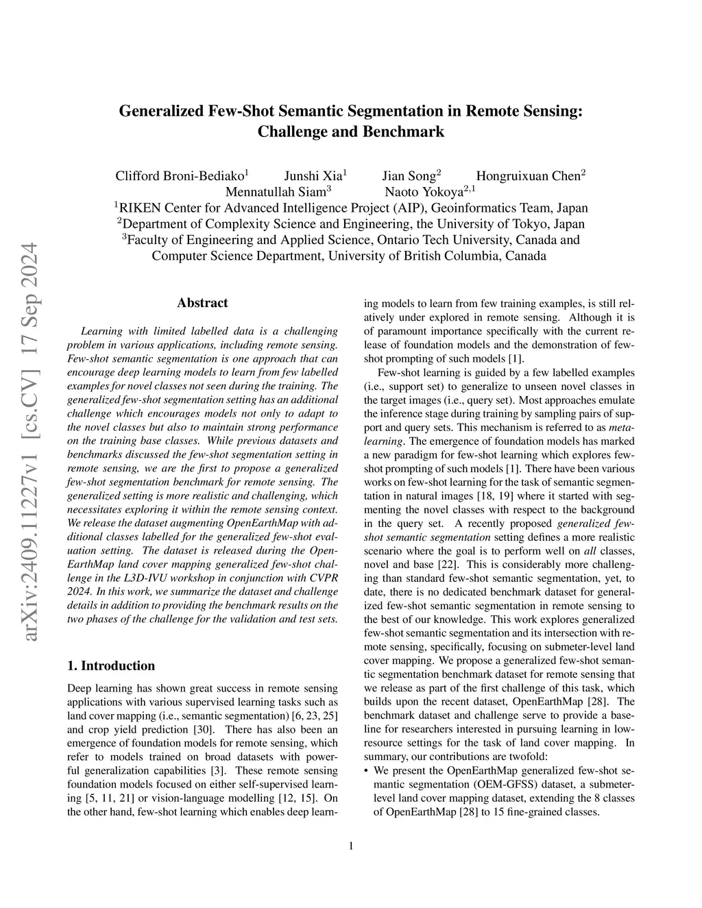 Generalized Few-Shot Semantic Segmentation in Remote Sensing: Challenge