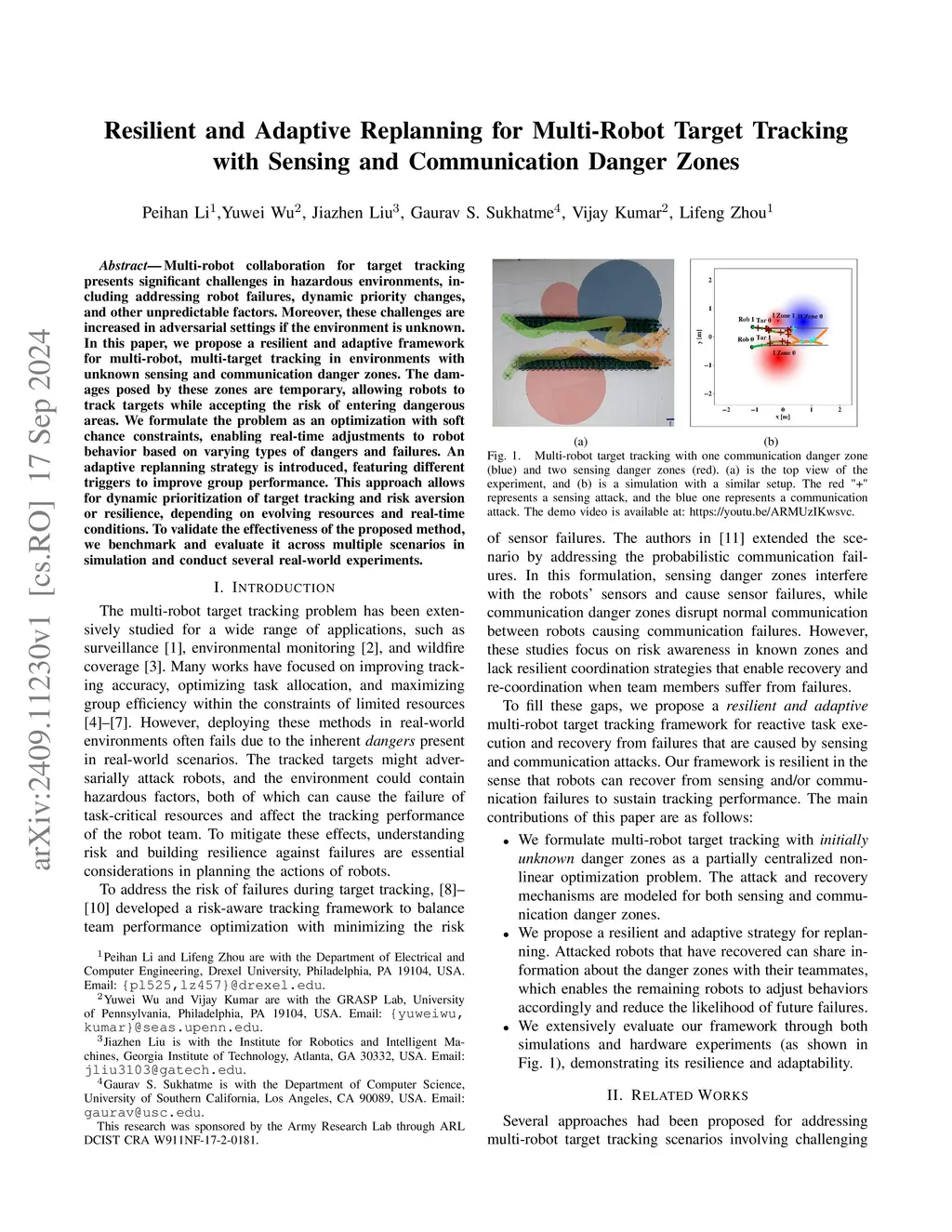 Resilient Multi-Robot Target Tracking with Sensing and Communication Danger Zones