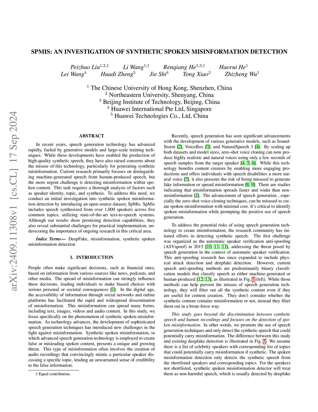 SpMis: An Investigation of Synthetic Spoken Misinformation Detection