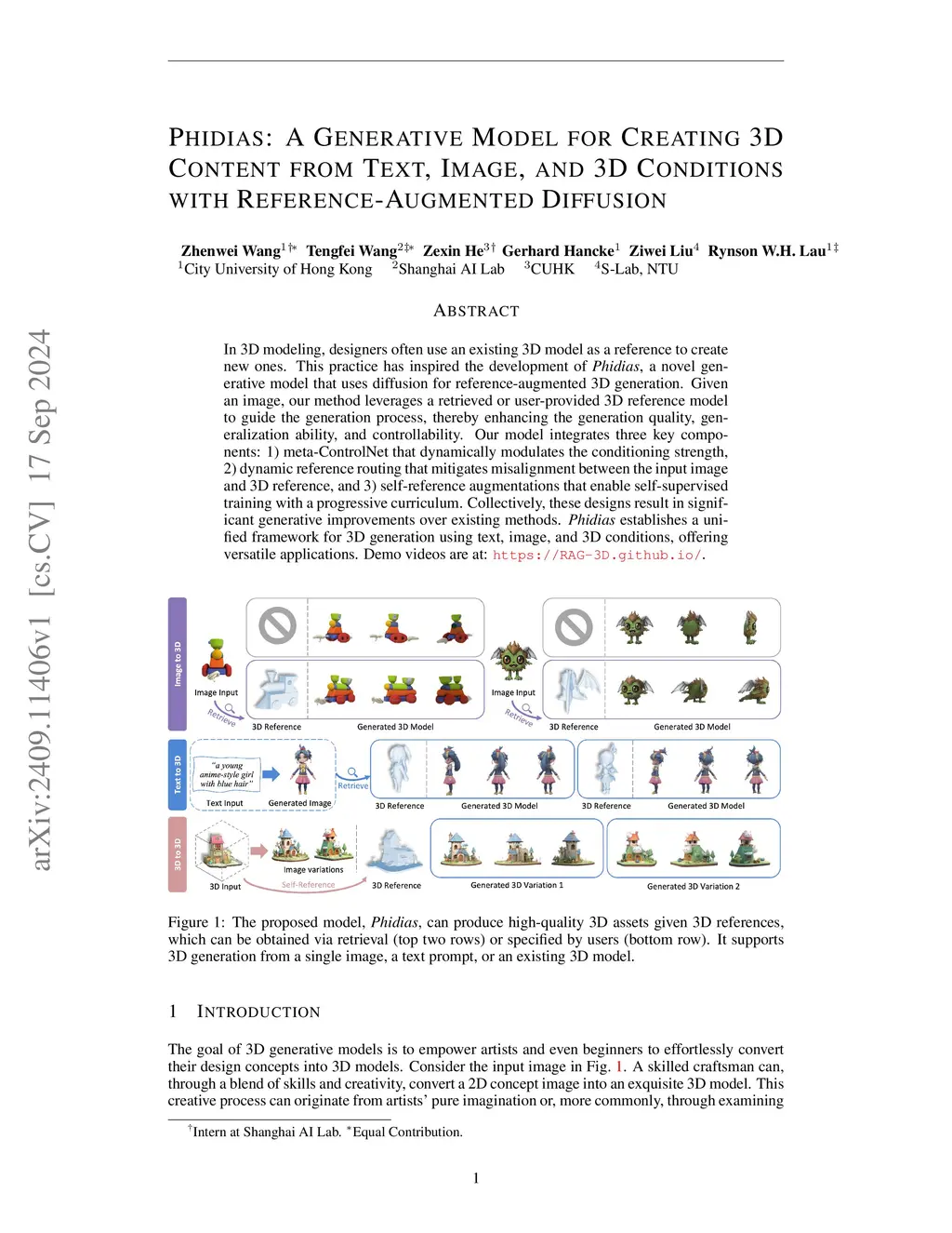 Phidias: A Generative Model for Creating 3D Content from Text, Image,