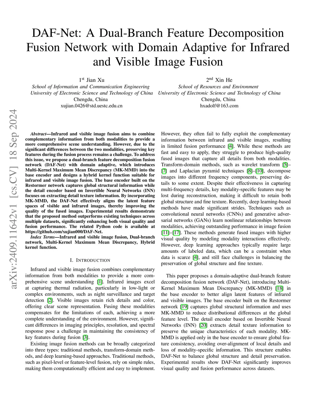 DAF-Net: A Dual-Branch Feature Decomposition Fusion Network with Domain