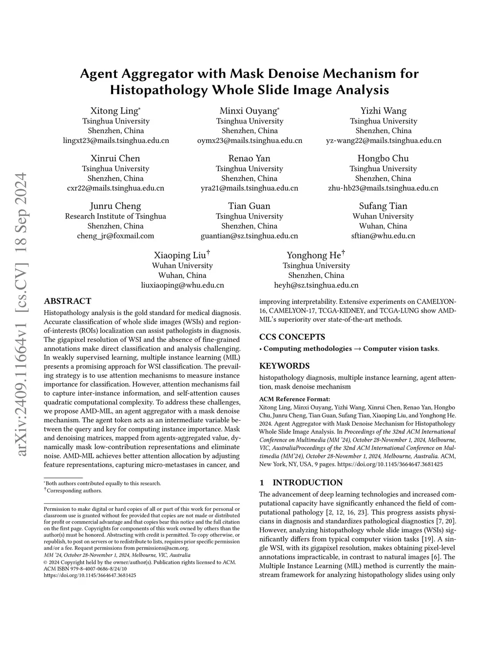 Agent Aggregator with Mask Denoise Mechanism for Histopathology Whole
