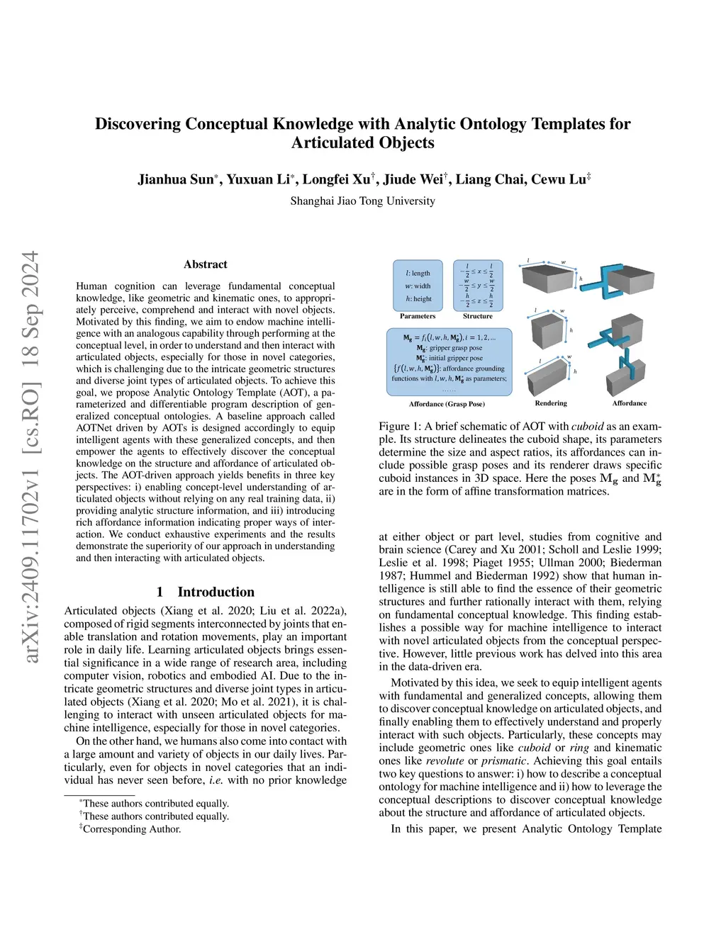 Human cognition can leverage fundamental conceptual knowledge, like geometric and kinematic ones, to appropriately perceive, comprehend and interact with novel objects. Motivated by this finding, we aim to endow machine intelligence with an analogous capability through performing at the conceptual level, in order to understand and then interact with articulated objects, especially for those in novel categories, which is challenging due to the intricate geometric structures and diverse joint types of articulated objects. To achieve this goal, we propose Analytic Ontology Template (AOT), a parameterized and differentiable program description of generalized conceptual ontologies. A baseline approach called AOTNet driven by AOTs is designed accordingly to equip intelligent agents with these generalized concepts, and then empower the agents to effectively discover the conceptual knowledge on the structure and affordance of articulated objects. The AOT-driven approach yields benefits in three key perspectives: i) enabling concept-level understanding of articulated objects without relying on any real training data, ii) providing analytic structure information, and iii) introducing rich affordance information indicating proper ways of interaction. We conduct exhaustive experiments and the results demonstrate the superiority of our approach in understanding and then interacting with articulated objects.