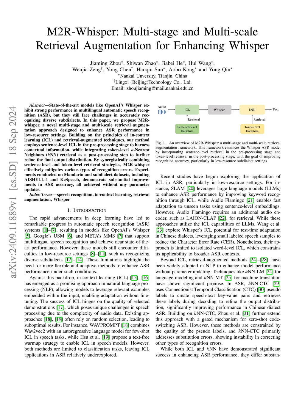 M2R-Whisper: Multi-stage and Multi-scale Retrieval Augmentation for Enhancing Whisper