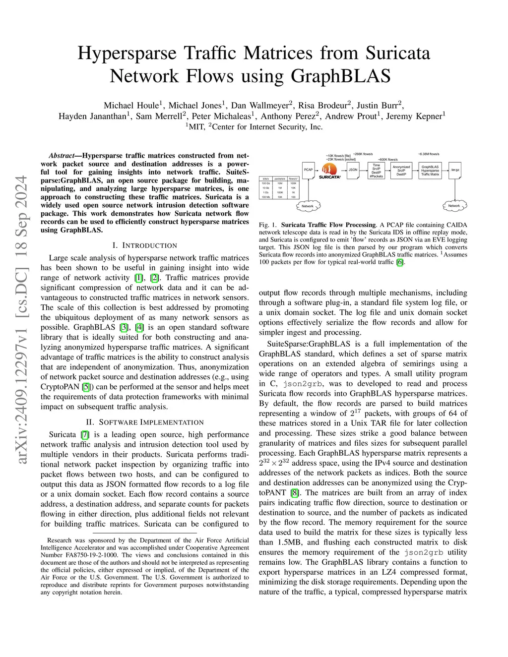 Hypersparse Traffic Matrices from Suricata Network Flows using GraphBLAS