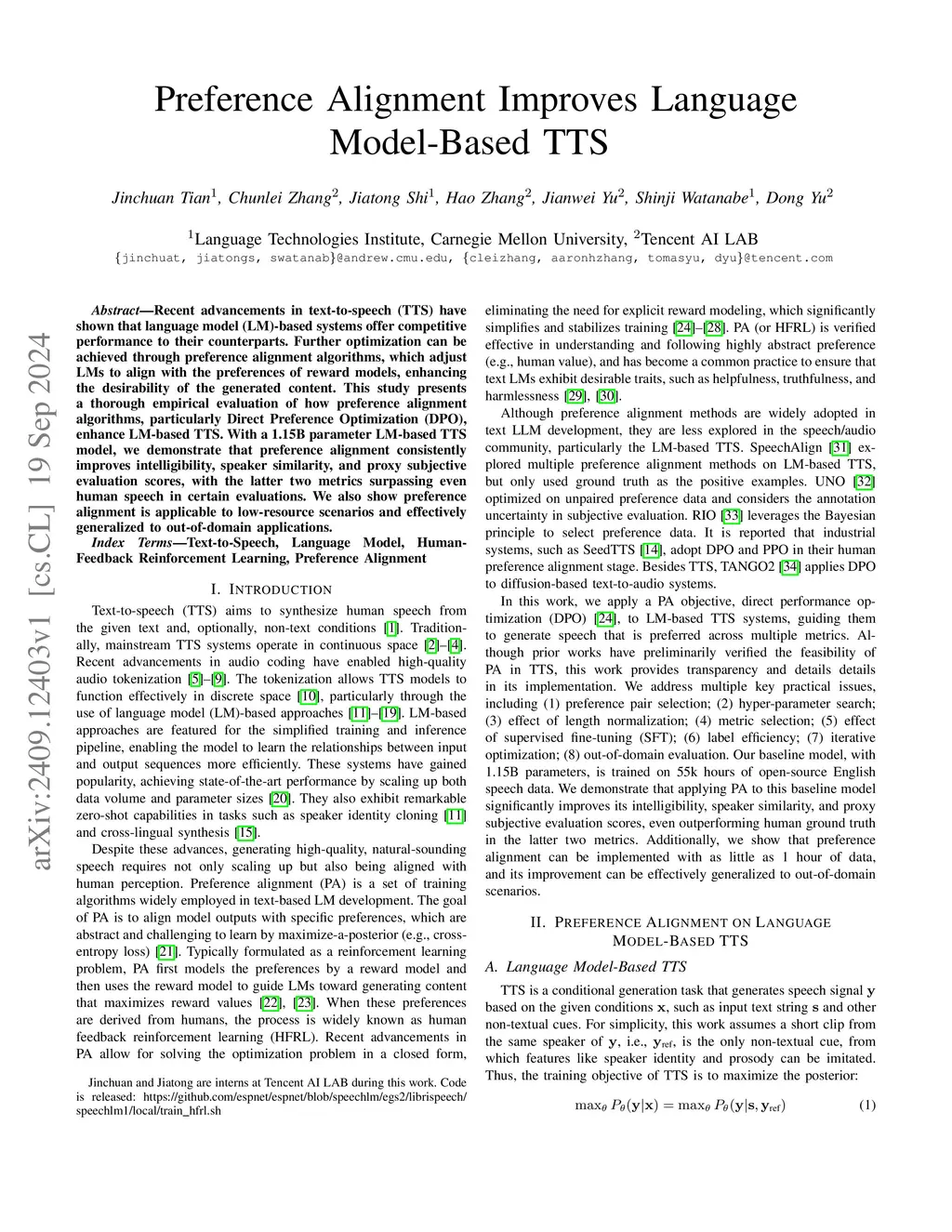 Preference Alignment Improves Language Model-Based TTS
