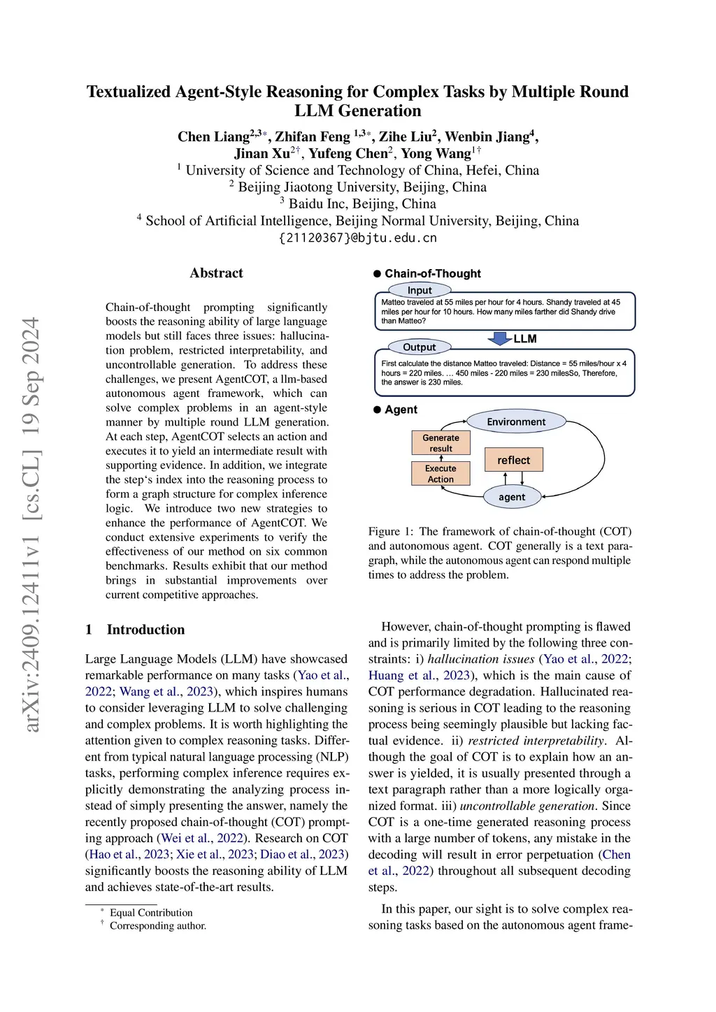 Chain-of-thought prompting significantly boosts the reasoning ability of large language models but still faces three issues: hallucination problem, restricted interpretability, and uncontrollable generation. To address these challenges, we present AgentCOT, a llm-based autonomous agent framework, which can solve complex problems in an agent-style manner by multiple round LLM generation. At each step, AgentCOT selects an action and executes it to yield an intermediate result with supporting evidence. In addition, we integrate the step's index into the reasoning process to form a graph structure for complex inference logic. We introduce two new strategies to enhance the performance of AgentCOT.We conduct extensive experiments to verify the effectiveness of our method on six common benchmarks. Results exhibit that our method brings in substantial improvements over current competitive approaches.