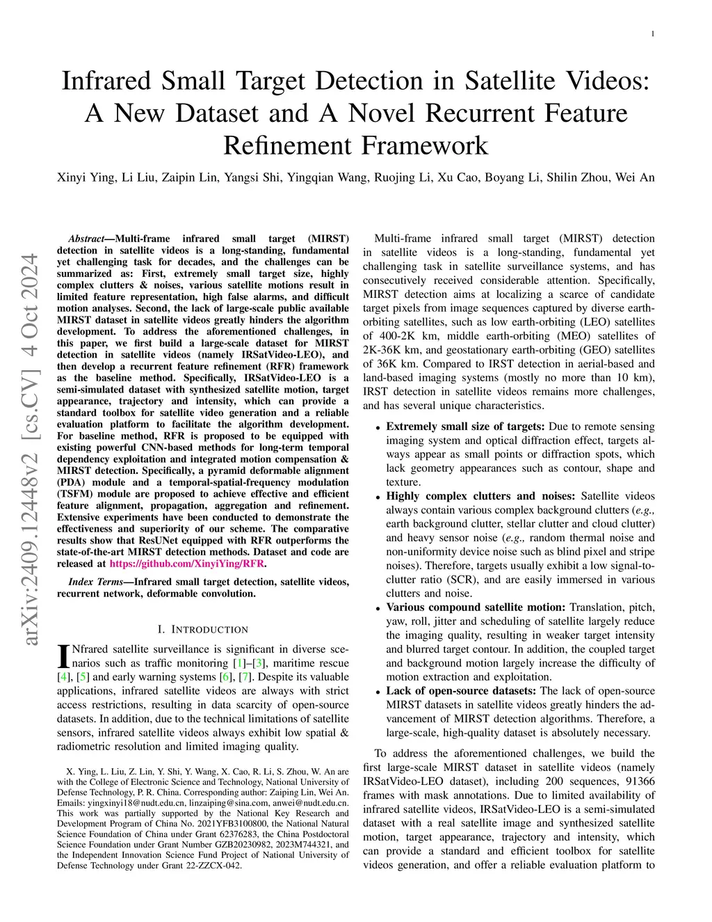 Infrared Small Target Detection in Satellite Videos: A New Dataset and A Novel Recurrent Feature Refinement Framework