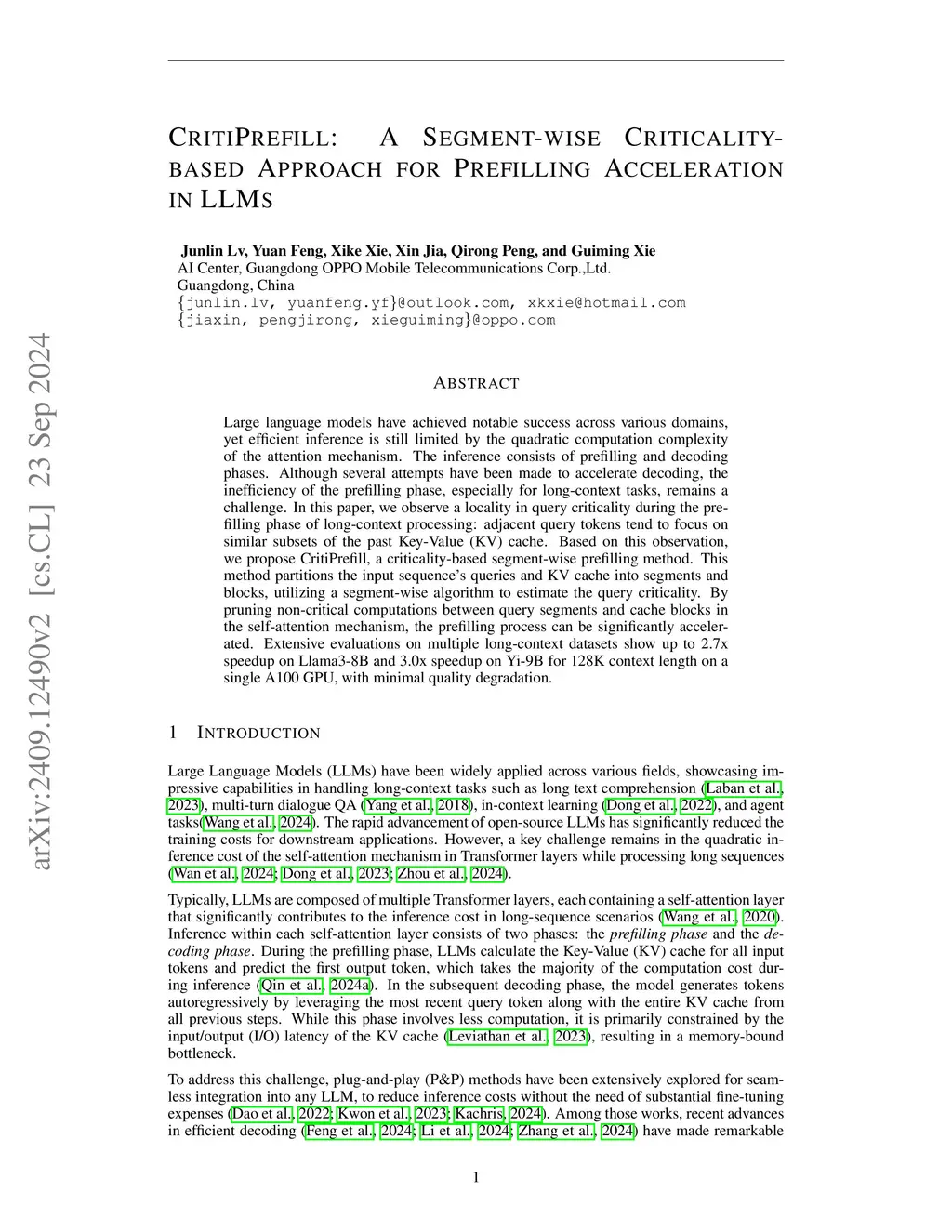 CritiPrefill: A Segment-wise Criticality-based Approach for Prefilling