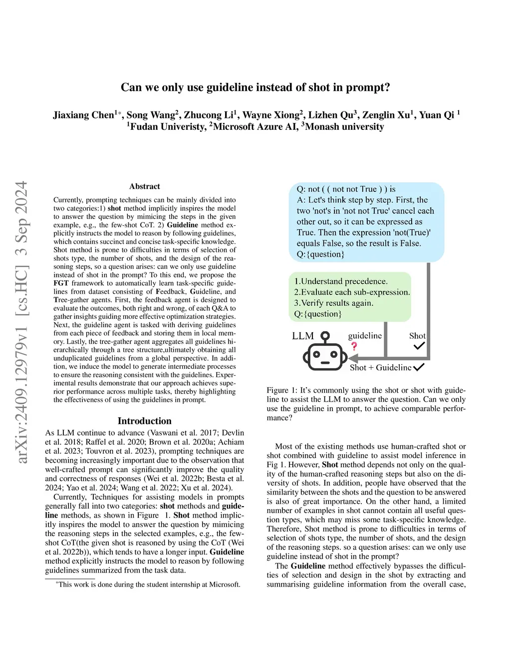 Currently, prompting techniques can be mainly divided into two categories:1)shot method implicitly inspires the model to answer the question by mimicing the steps in the given example, e.g., the few-shot CoT. 2) Guideline method explicitly instructs the model to reason by following guidelines, which contains succinct and concise task-specific knowledge. Shot method is prone to difficulties in terms of selection of shots type, the number of shots, and the design of the reasoning steps, so a question arises: can we only use guideline instead of shot in the prompt? To this end, we propose the FGT framework to automatically learn task-specific guidelines from dataset consisting of Feedback, Guideline, and Tree-gather agents. First, the feedback agent is designed to evaluate the outcomes, both right and wrong, of each Q&A to gather insights guiding more effective optimization strategies. Next, the guideline agent is tasked with deriving guidelines from each piece of feedback and storing them in local memory. Lastly, the tree-gather agent aggregates all guidelines hierarchically through a tree structure, ultimately obtaining all unduplicated guidelines from a global perspective. In addition, we induce the model to generate intermediate processes to ensure the reasoning consistent with the guidelines. Experimental results demonstrate that our approach achieves superior performance across multiple tasks, thereby highlighting the effectiveness of using the guidelines in prompt.