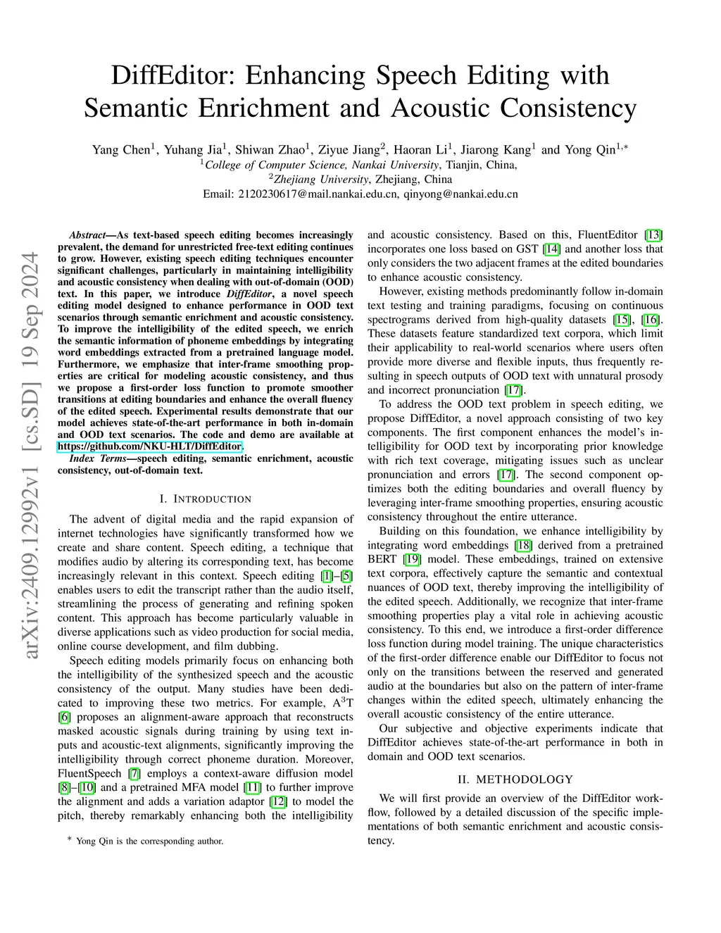 DiffEditor: Enhancing Speech Editing with Semantic Enrichment and