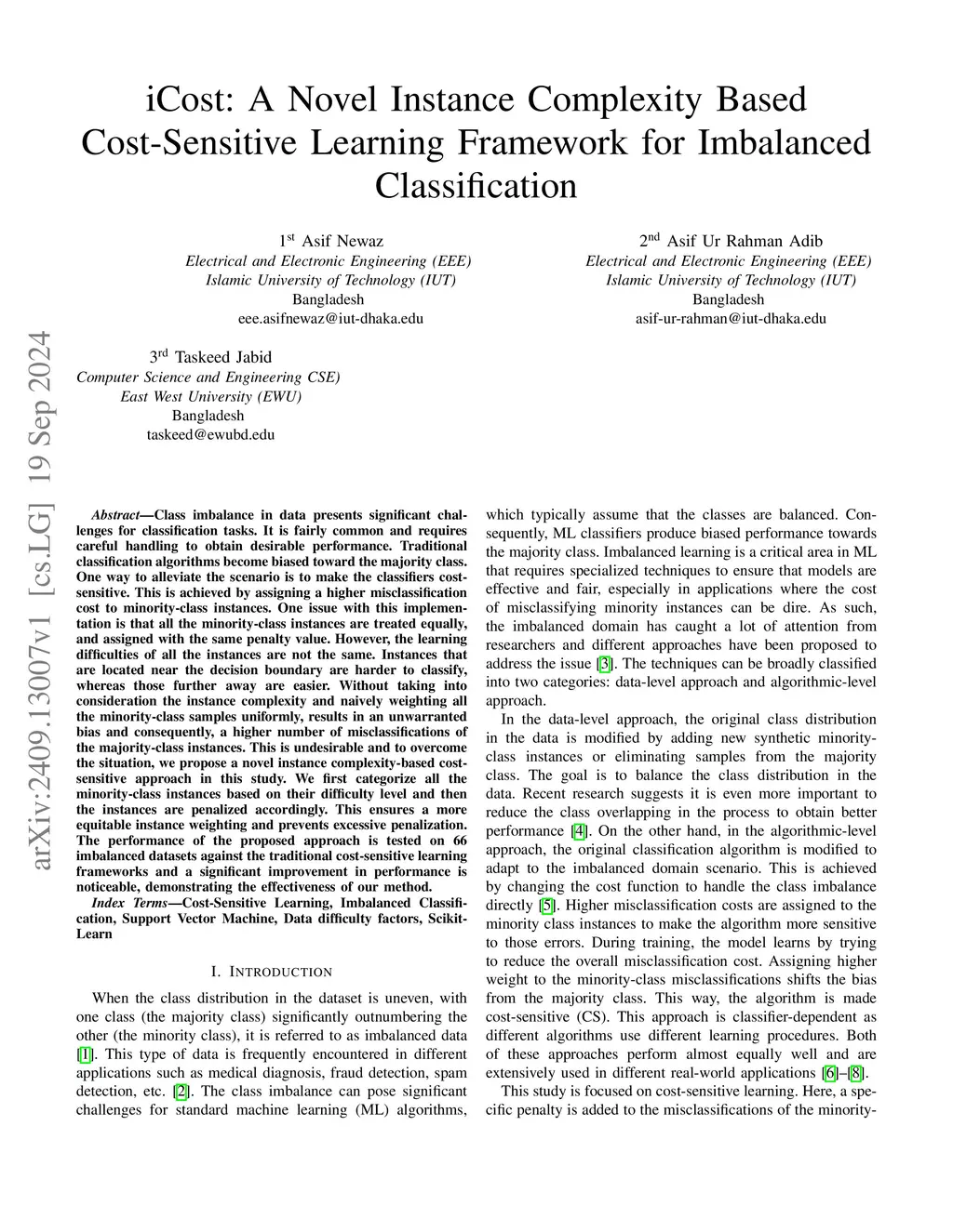 iCost: A Novel Instance Complexity Based Cost-Sensitive Learning