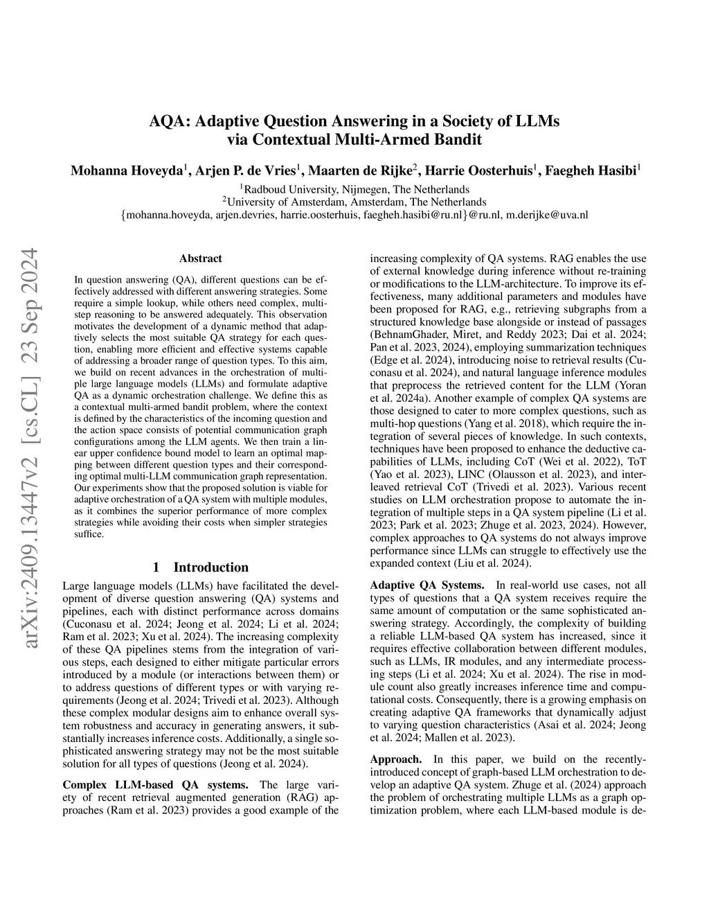 AQA: Adaptive Question Answering in a Society of LLMs via Contextual
