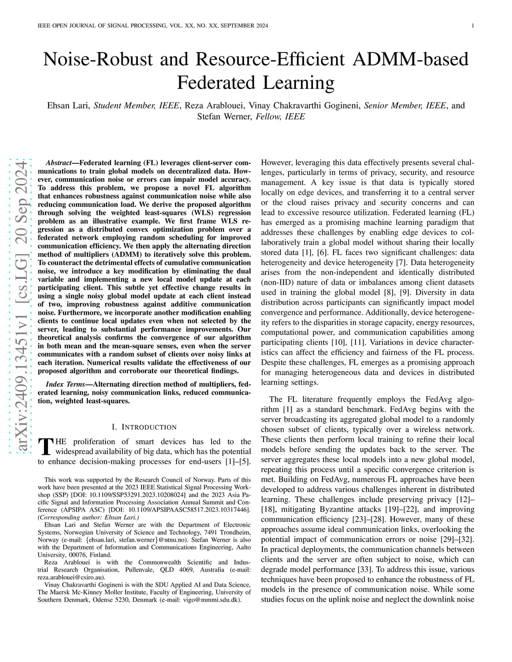 Noise-Robust and Resource-Efficient ADMM-based Federated Learning