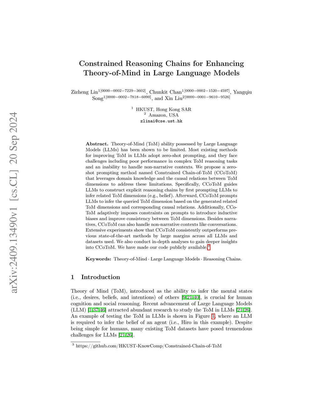 Constrained Reasoning Chains for Enhancing Theory-of-Mind in Large