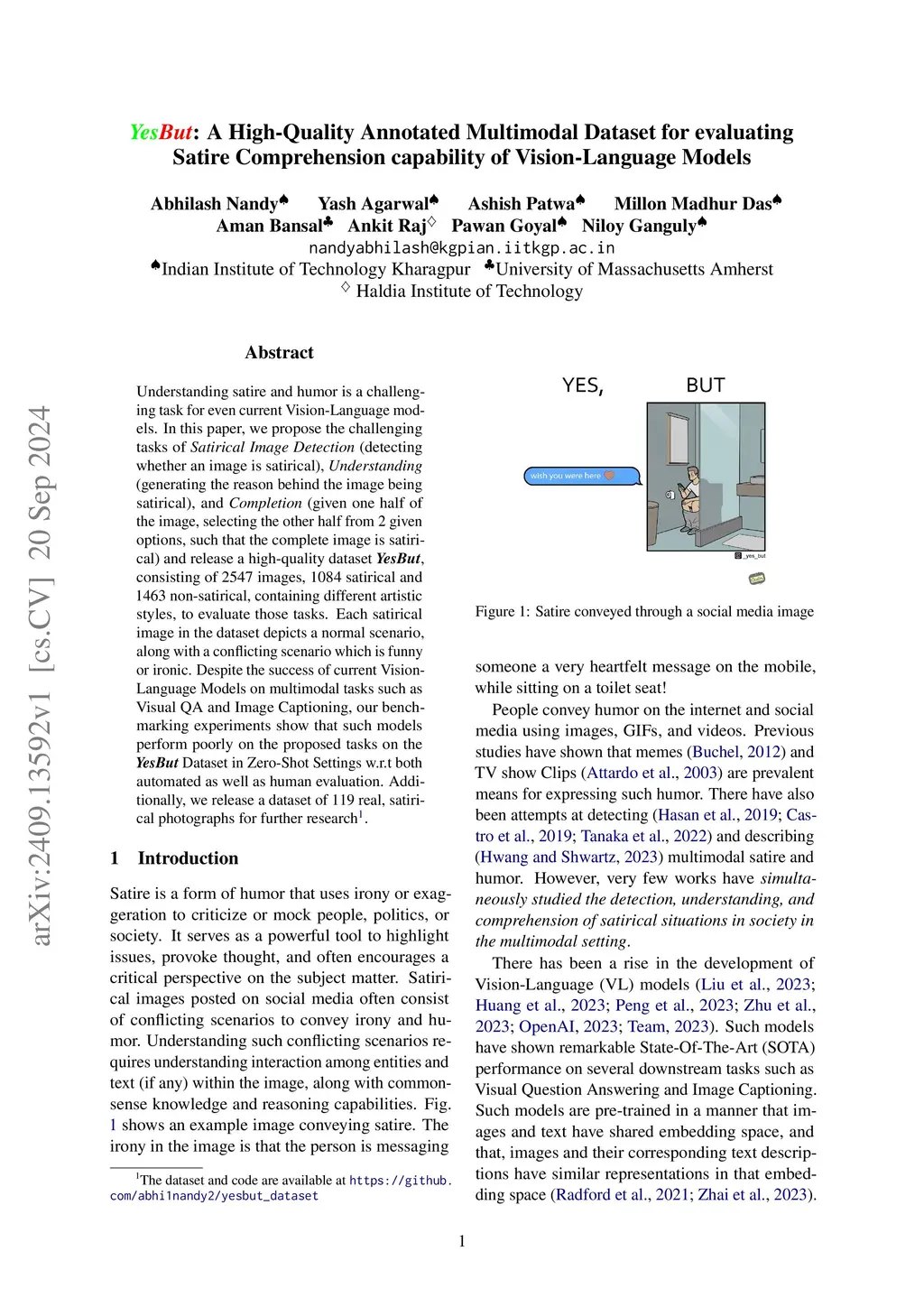 YesBut: A High-Quality Annotated Multimodal Dataset for evaluating
