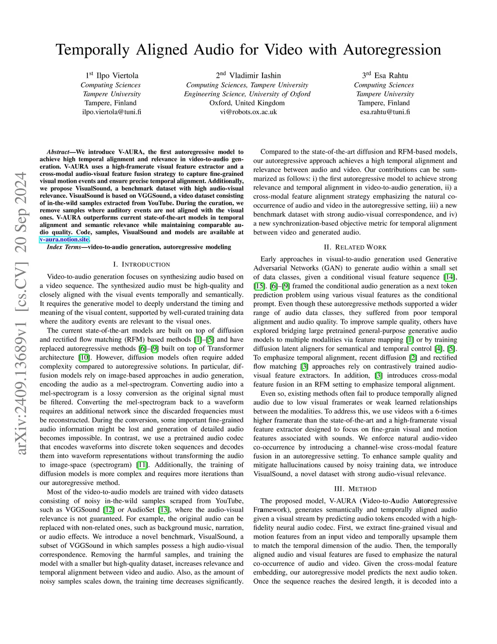 We introduce V-AURA, the first autoregressive model to achieve high temporal alignment and relevance in video-to-audio generation. V-AURA uses a high-framerate visual feature extractor and a cross-modal audio-visual feature fusion strategy to capture fine-grained visual motion events and ensure precise temporal alignment. Additionally, we propose VisualSound, a benchmark dataset with high audio-visual relevance. VisualSound is based on VGGSound, a video dataset consisting of in-the-wild samples extracted from YouTube. During the curation, we remove samples where auditory events are not aligned with the visual ones. V-AURA outperforms current state-of-the-art models in temporal alignment and semantic relevance while maintaining comparable audio quality. Code, samples, VisualSound and models are available at https://v-aura.notion.site