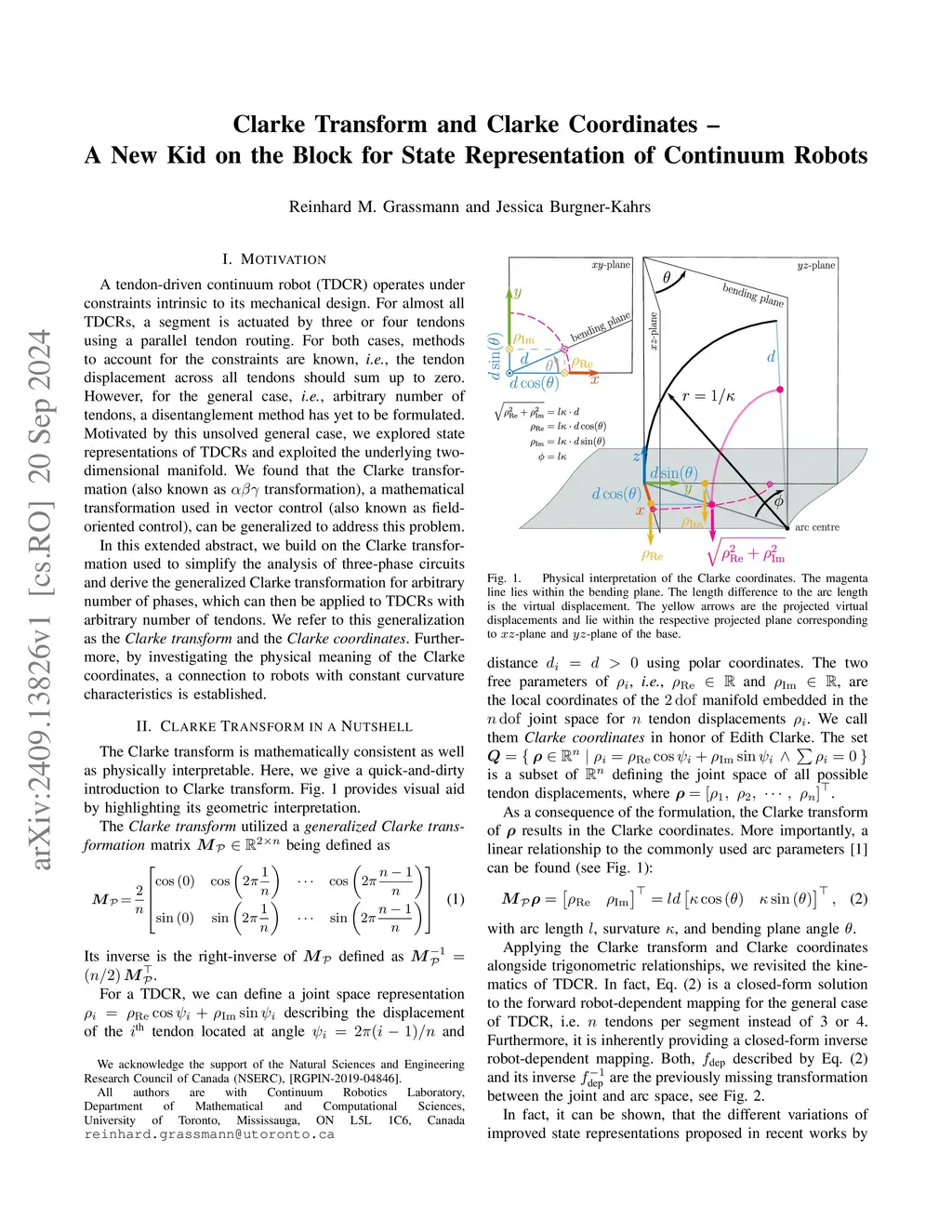 For almost all tendon-driven continuum robots, a segment is actuated by three or four tendons constrained by its mechanical design. For both cases, methods to account for the constraints are known. However, for an arbitrary number of tendons, a disentanglement method has yet to be formulated. Motivated by this unsolved general case, we explored state representations and exploited the two-dimensional manifold. We found that the Clarke transformation, a mathematical transformation used in vector control, can be generalized to address this problem. We present the Clarke transform and Clarke coordinates, which can be used to overcome the troublesome interdependency between the tendons, simplify modeling, and unify different improved state representations. Further connection to arc parameters leads to the possibility to derive more generalizable approaches applicable to a wider range of robot types.