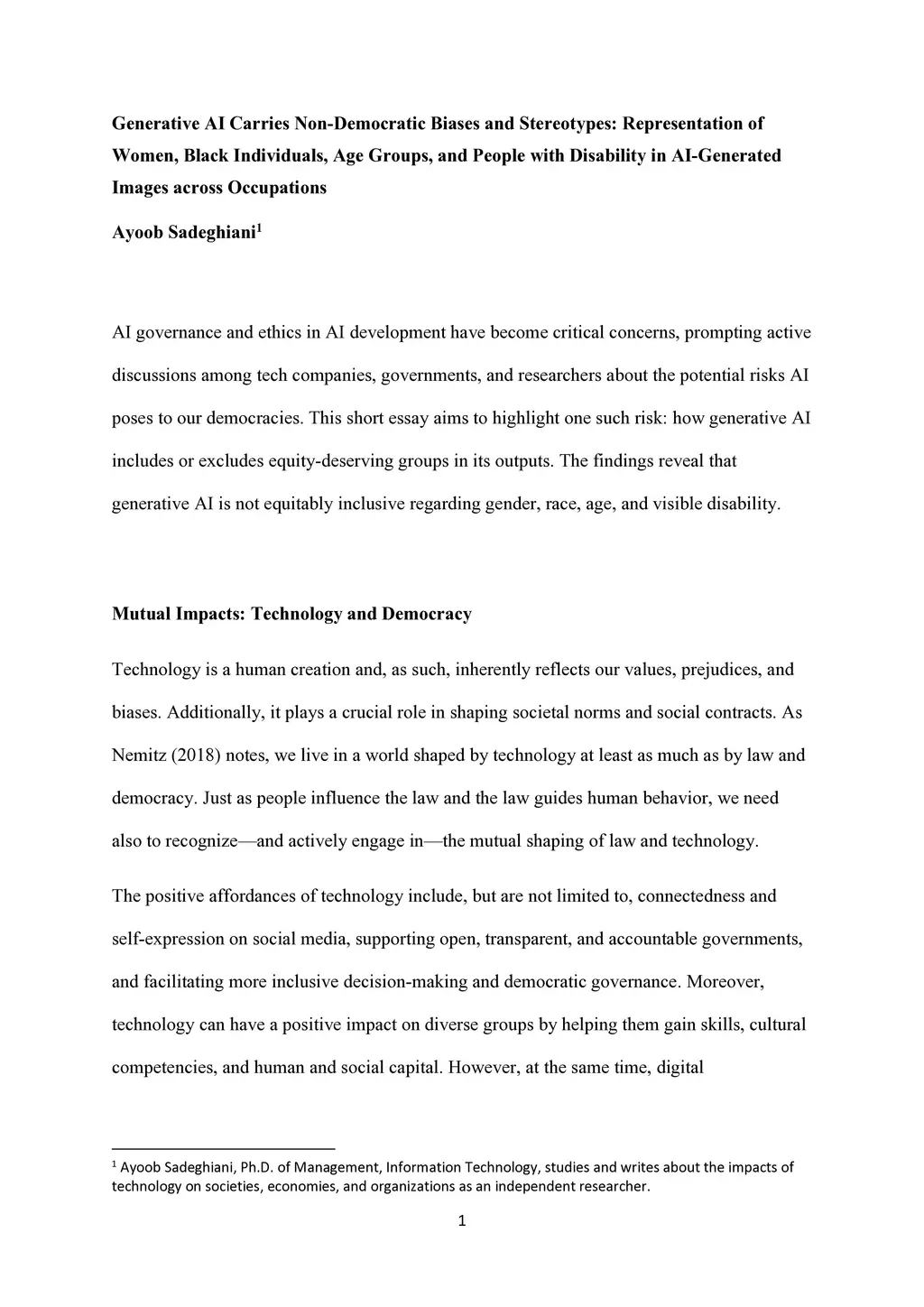 AI governance and ethics in AI development have become critical concerns, prompting active discussions among tech companies, governments, and researchers about the potential risks AI poses to our democracies. This short essay aims to highlight one such risk: how generative AI includes or excludes equity-deserving groups in its outputs. The findings reveal that generative AI is not equitably inclusive regarding gender, race, age, and visible disability.