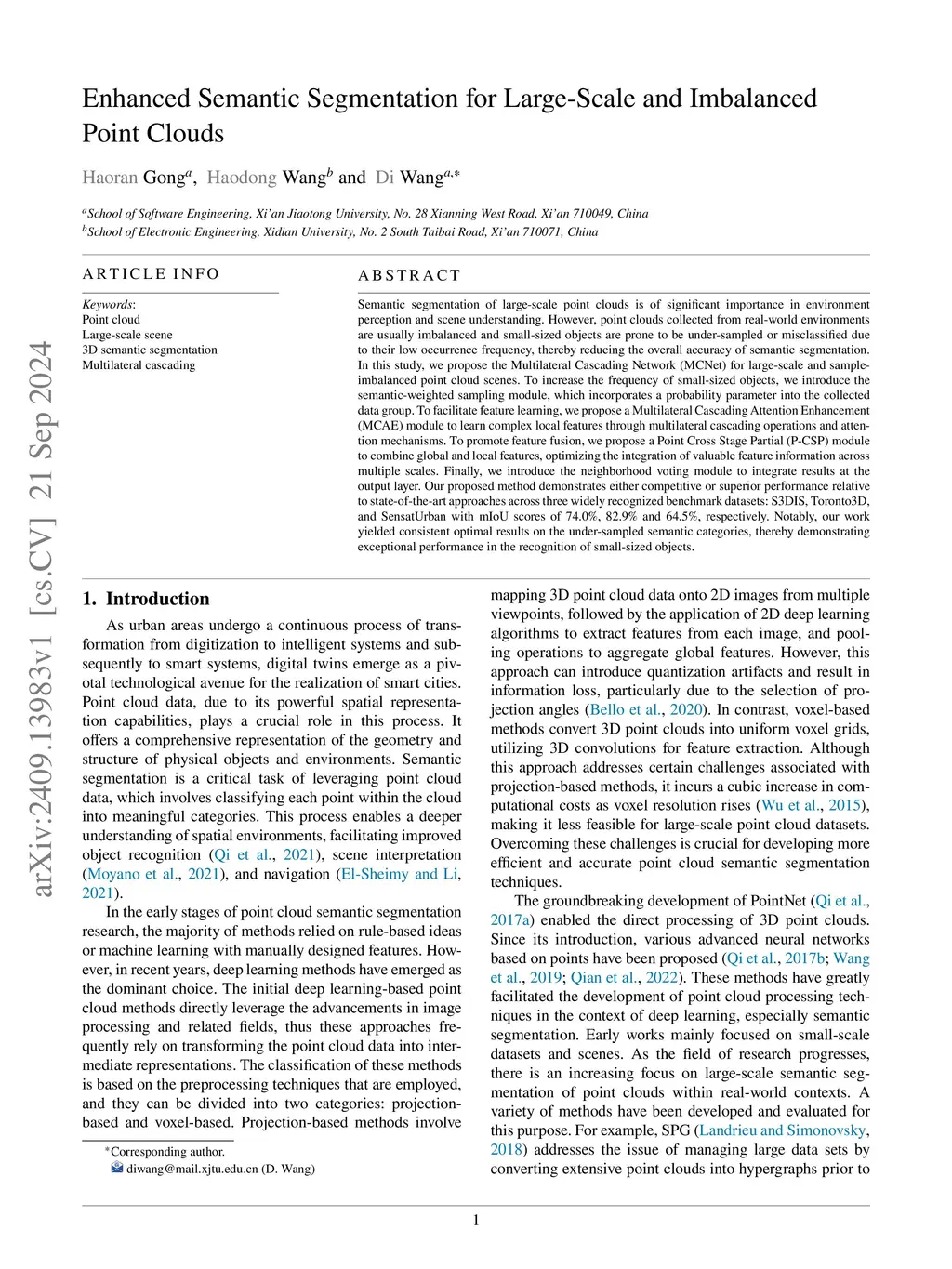 Enhanced Semantic Segmentation for Large-Scale and Imbalanced Point