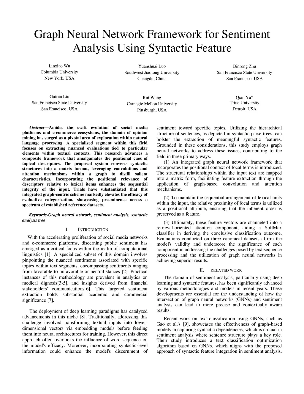 Graph Neural Network Framework for Sentiment Analysis Using Syntactic