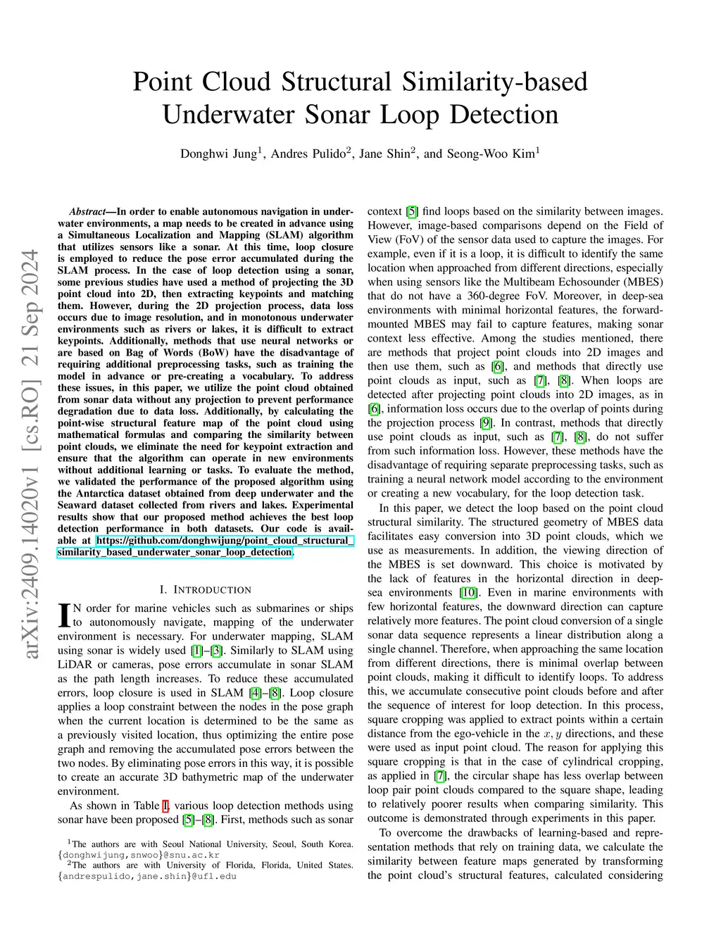 Point Cloud Structural Similarity-based Underwater Sonar Loop Detection