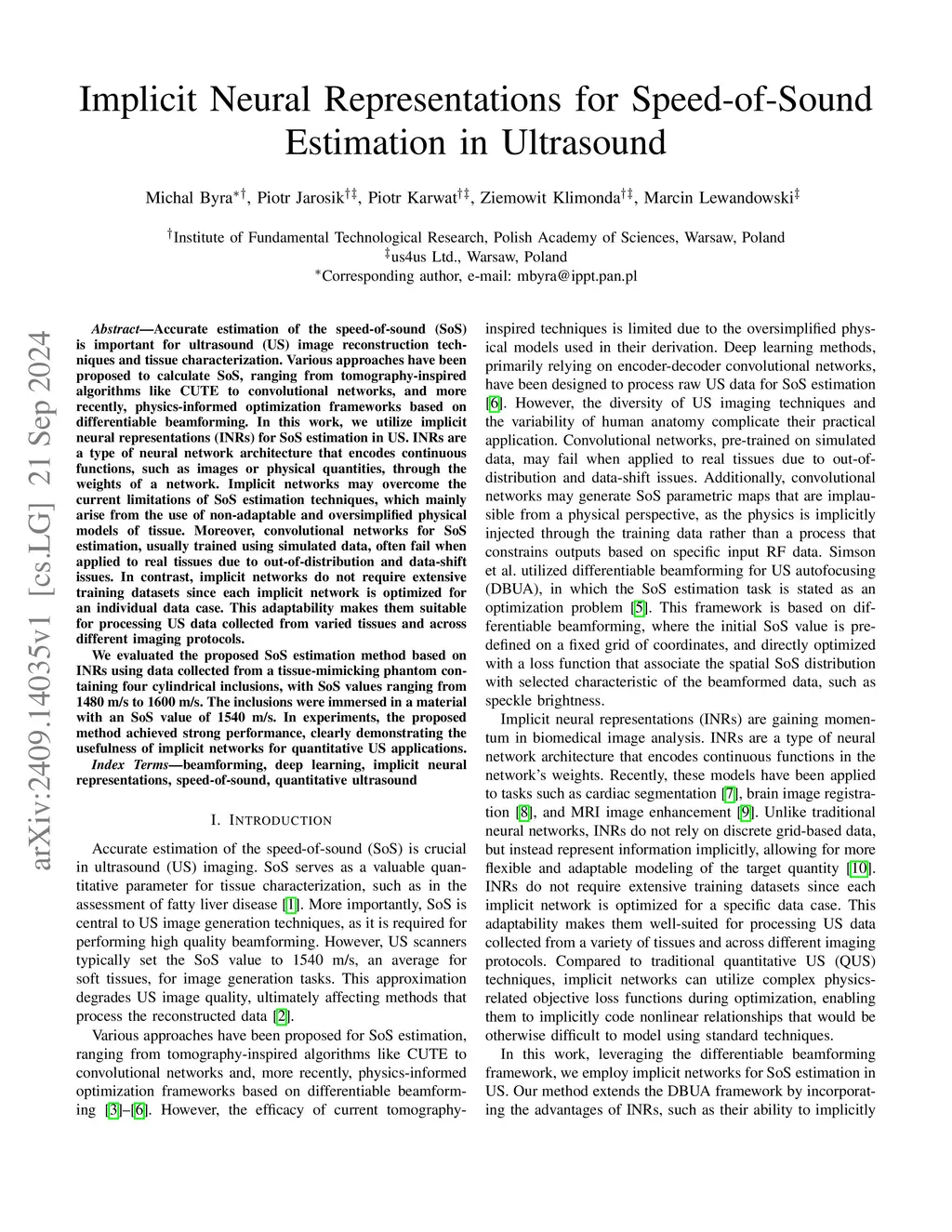 Implicit Neural Representations for Speed-of-Sound Estimation in