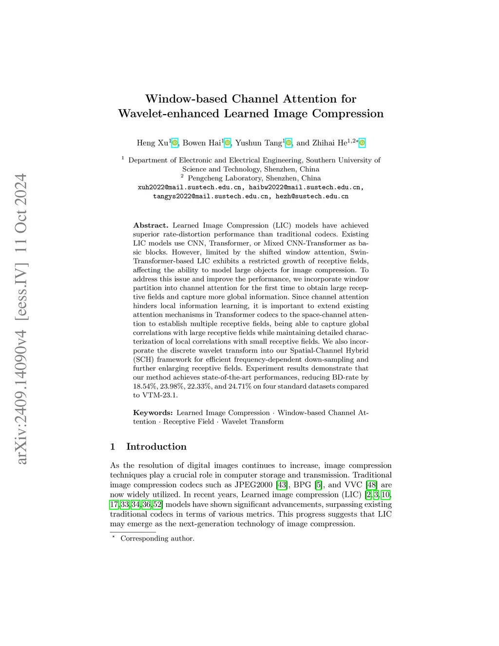 Window-based Channel Attention for Wavelet-enhanced Learned Image