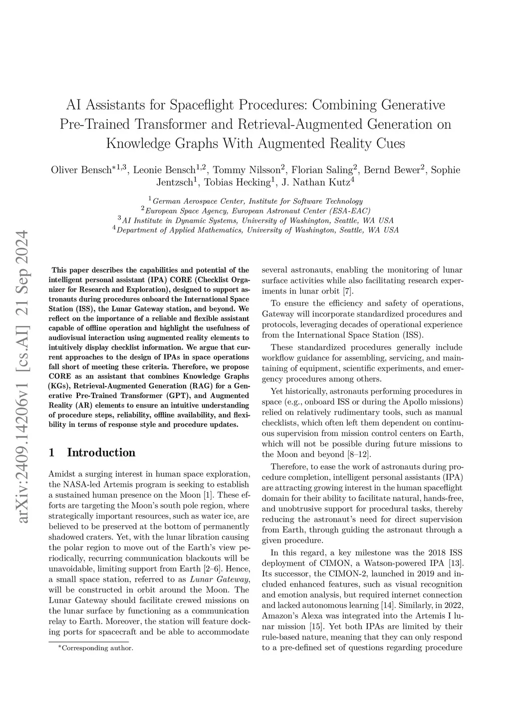 This paper describes the capabilities and potential of the intelligent personal assistant (IPA) CORE (Checklist Organizer for Research and Exploration), designed to support astronauts during procedures onboard the International Space Station (ISS), the Lunar Gateway station, and beyond. We reflect on the importance of a reliable and flexible assistant capable of offline operation and highlight the usefulness of audiovisual interaction using augmented reality elements to intuitively display checklist information. We argue that current approaches to the design of IPAs in space operations fall short of meeting these criteria. Therefore, we propose CORE as an assistant that combines Knowledge Graphs (KGs), Retrieval-Augmented Generation (RAG) for a Generative Pre-Trained Transformer (GPT), and Augmented Reality (AR) elements to ensure an intuitive understanding of procedure steps, reliability, offline availability, and flexibility in terms of response style and procedure updates.