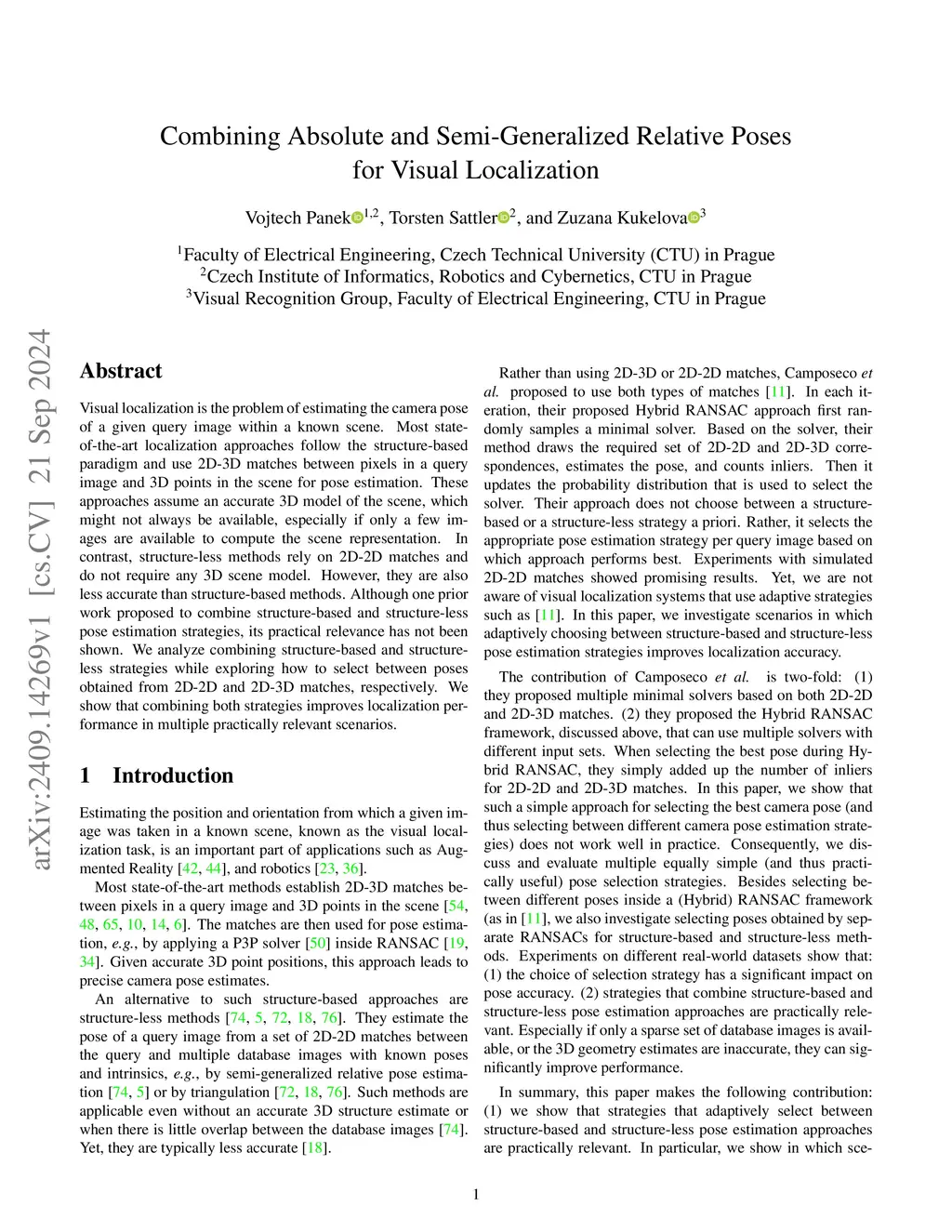 Combining Absolute and Semi-Generalized Relative Poses for Visual