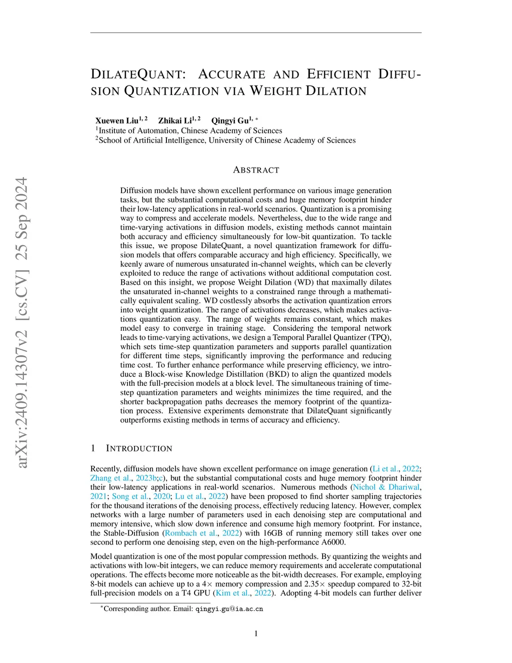 DilateQuant: Accurate and Efficient Diffusion Quantization via Weight Dilation