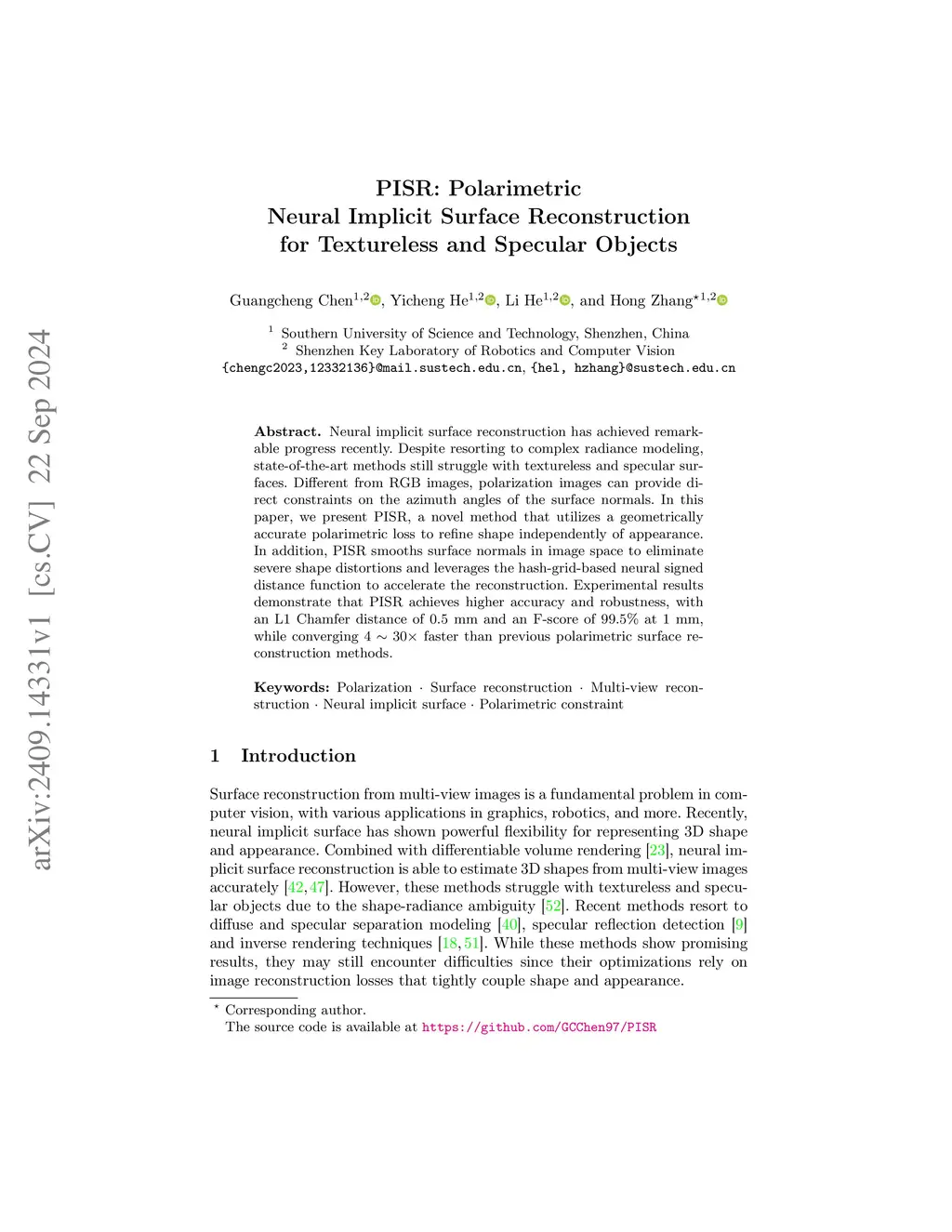 PISR: Polarimetric Neural Implicit Surface Reconstruction for