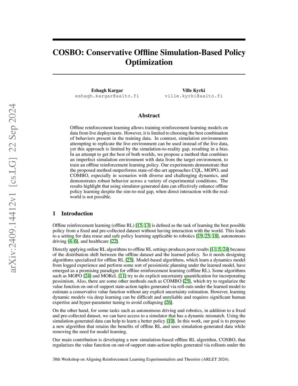 COSBO: Conservative Offline Simulation-Based Policy Optimization