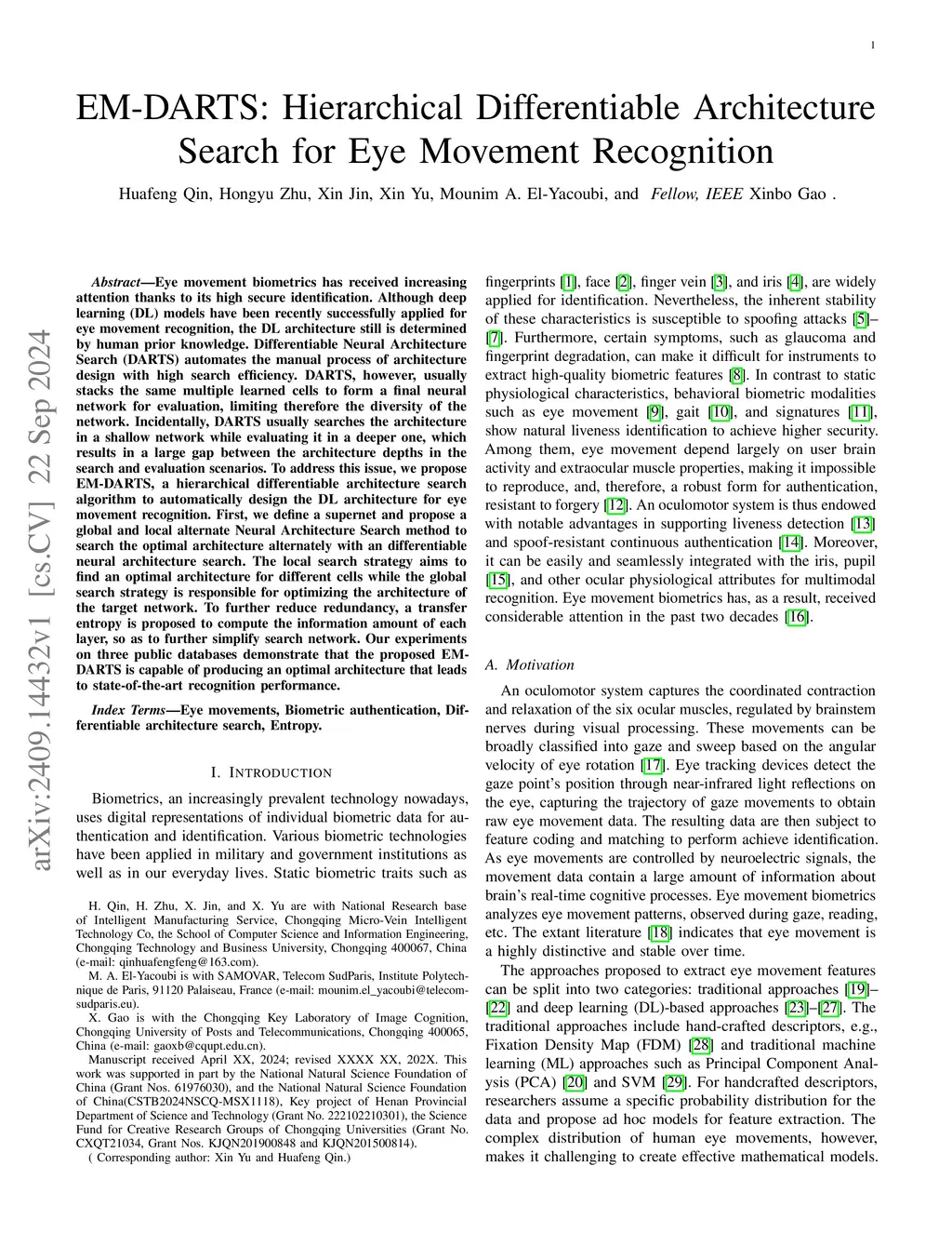 EM-DARTS: Hierarchical Differentiable Architecture Search for Eye Movement Recognition