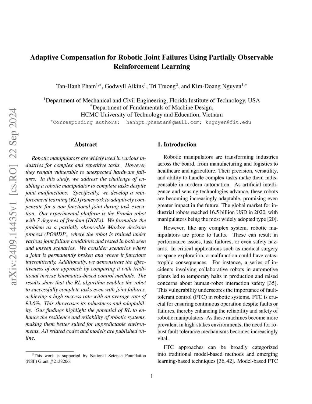 Adaptive Compensation for Robotic Joint Failures Using Partially