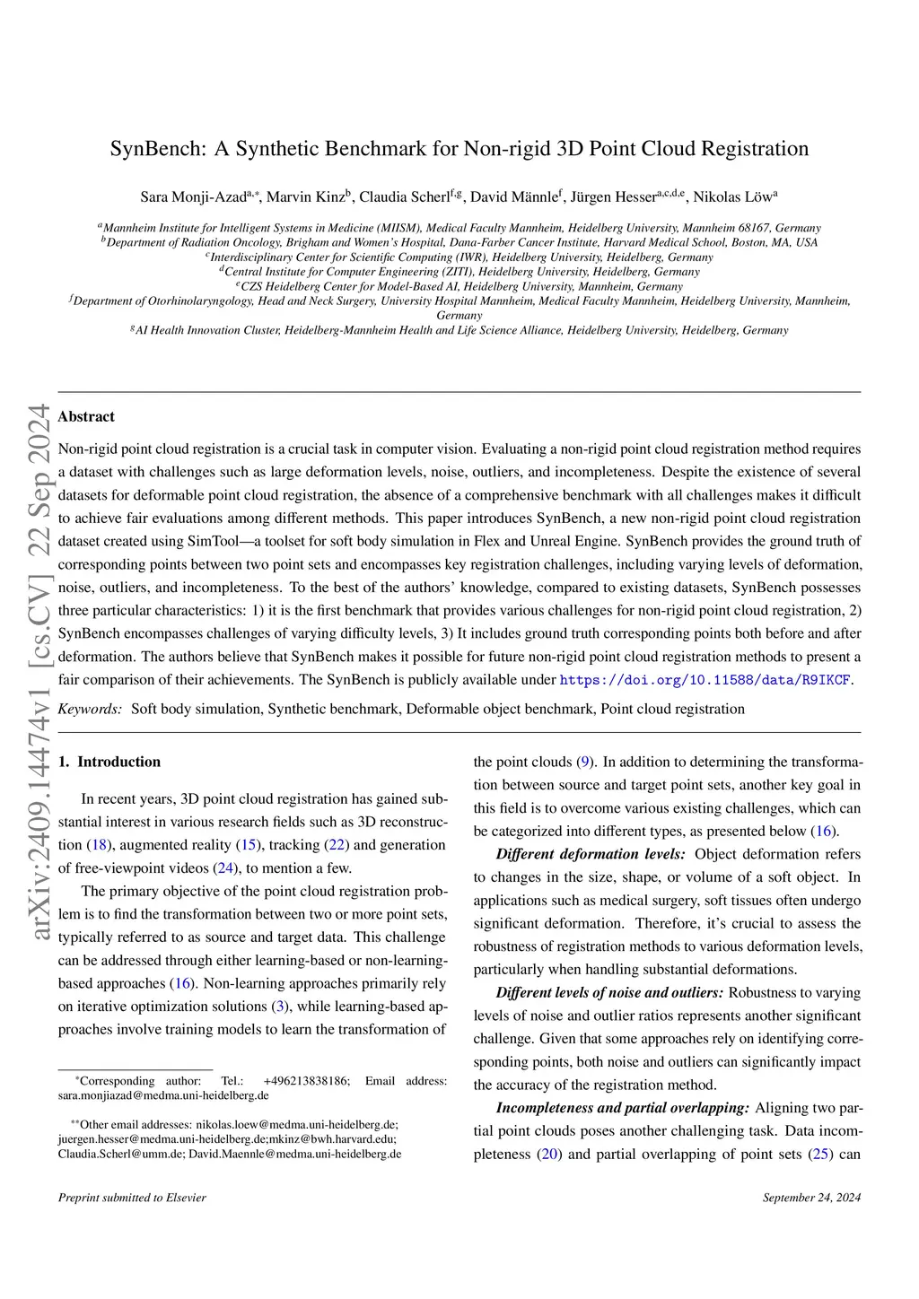 SynBench: A Synthetic Benchmark for Non-rigid 3D Point Cloud