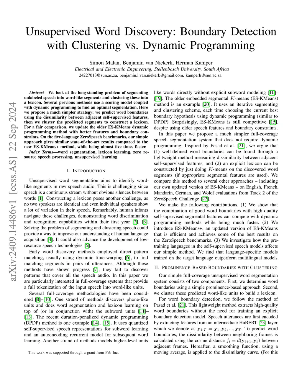 Unsupervised Word Discovery: Boundary Detection with Clustering vs. Dynamic Programming