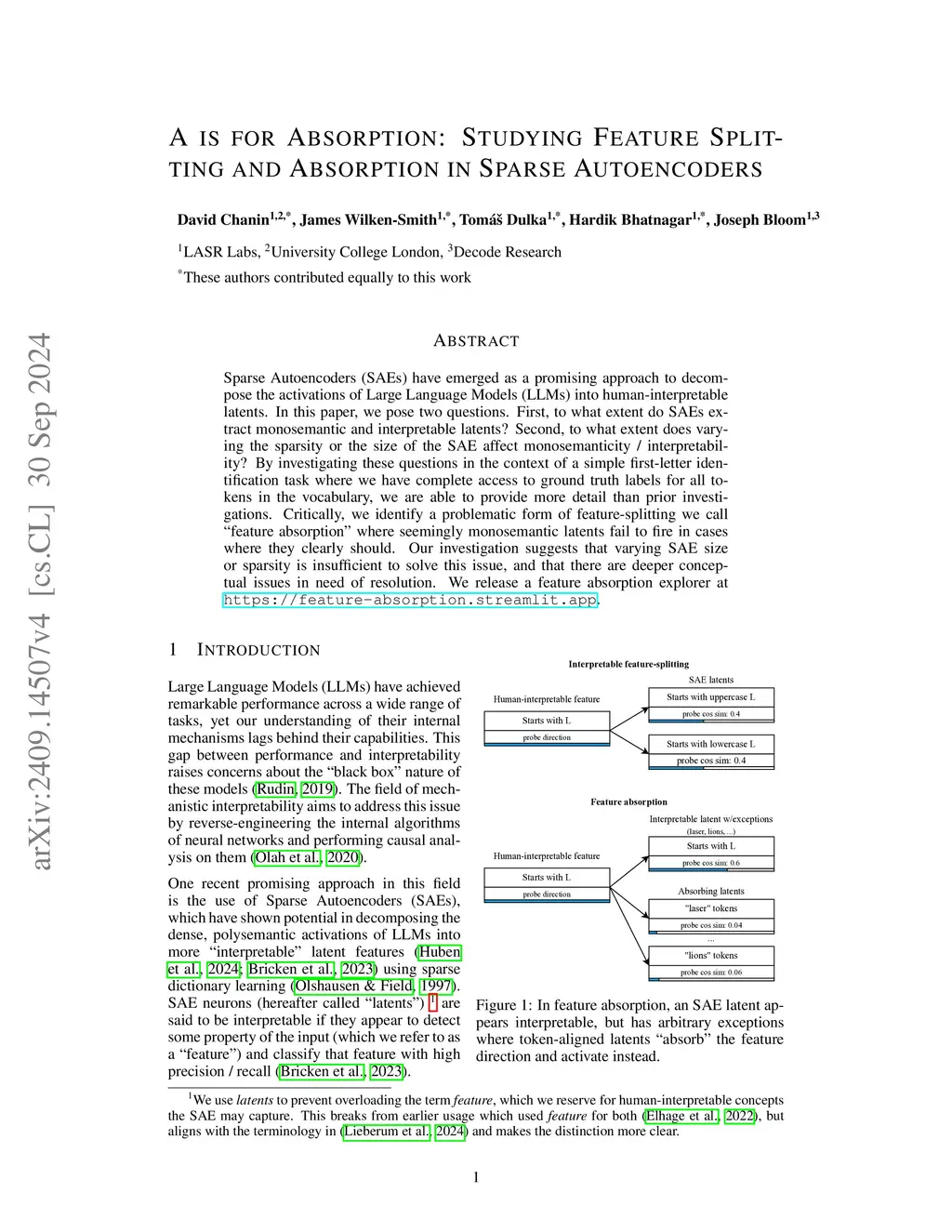 A is for Absorption: Studying Feature Splitting and Absorption in Sparse Autoencoders