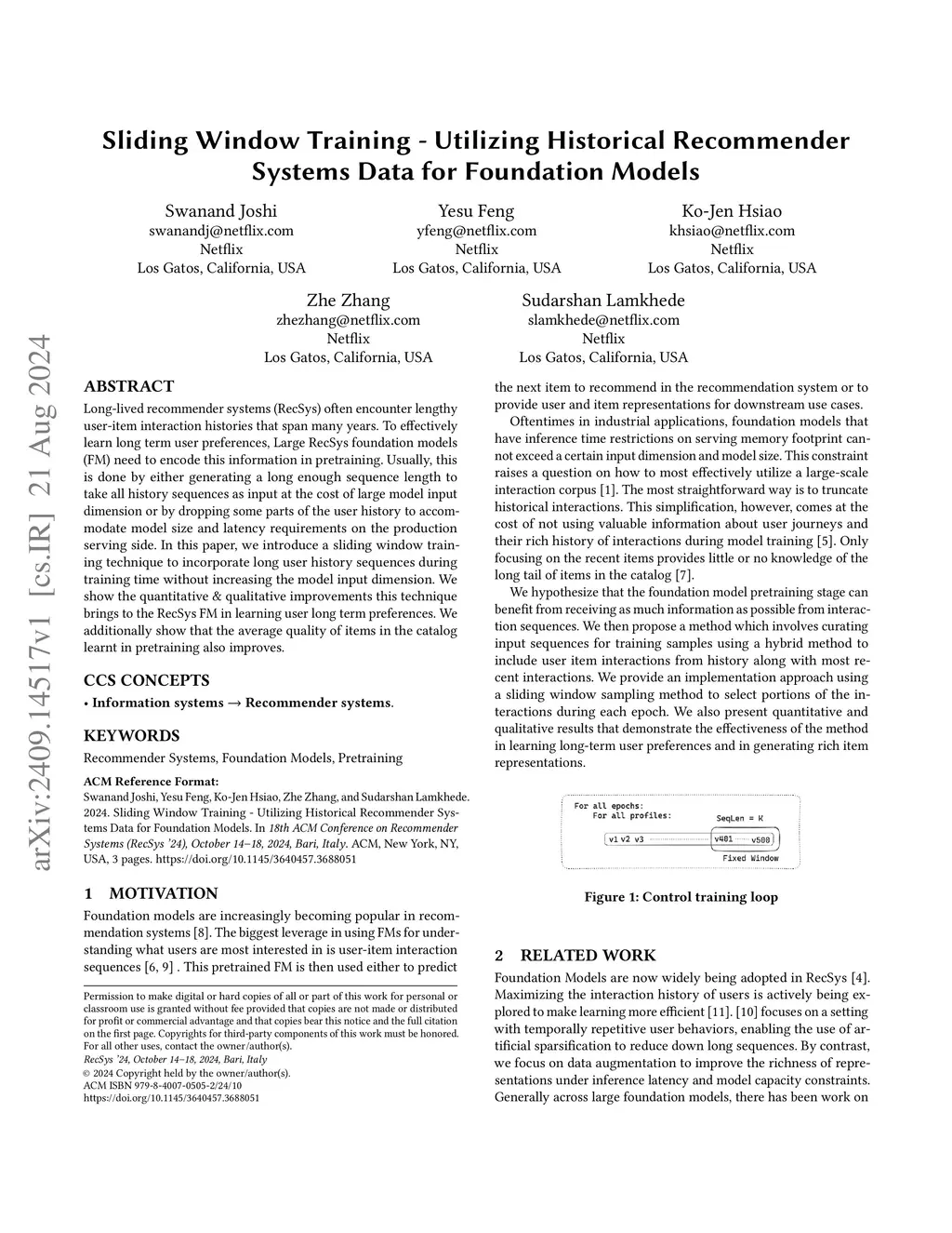 Long-lived recommender systems (RecSys) often encounter lengthy user-item interaction histories that span many years. To effectively learn long term user preferences, Large RecSys foundation models (FM) need to encode this information in pretraining. Usually, this is done by either generating a long enough sequence length to take all history sequences as input at the cost of large model input dimension or by dropping some parts of the user history to accommodate model size and latency requirements on the production serving side. In this paper, we introduce a sliding window training technique to incorporate long user history sequences during training time without increasing the model input dimension. We show the quantitative & qualitative improvements this technique brings to the RecSys FM in learning user long term preferences. We additionally show that the average quality of items in the catalog learnt in pretraining also improves.