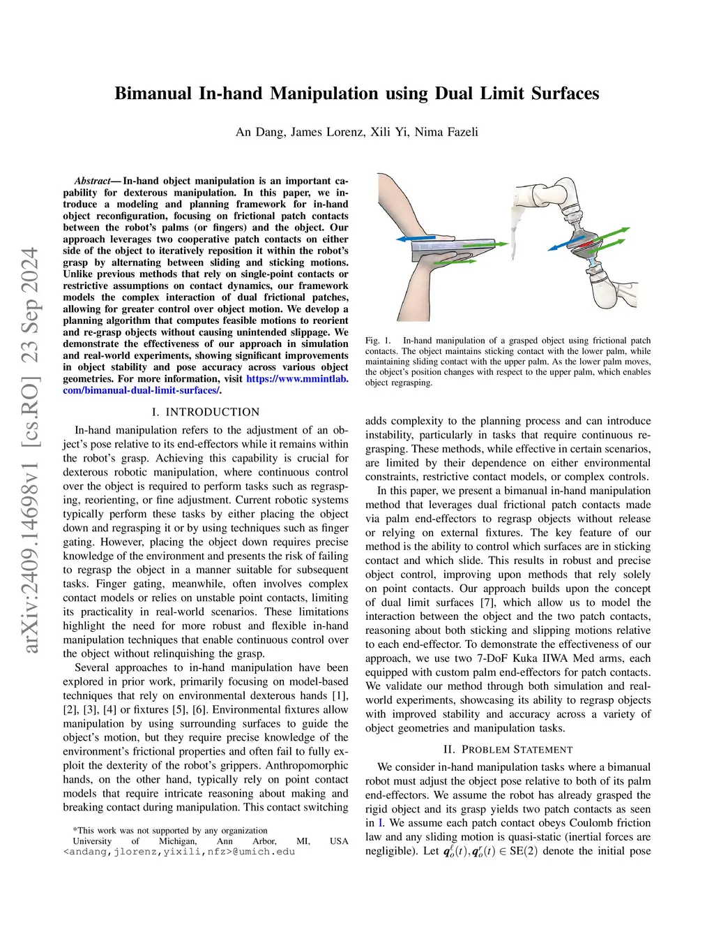 Bimanual In-hand Manipulation using Dual Limit Surfaces