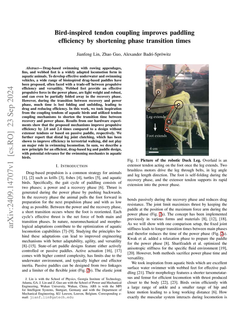 Bird-inspired tendon coupling improves paddling efficiency by shortening