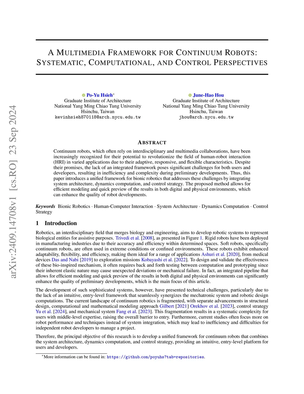 A Multimedia Framework for Continuum Robots: Systematic, Computational,