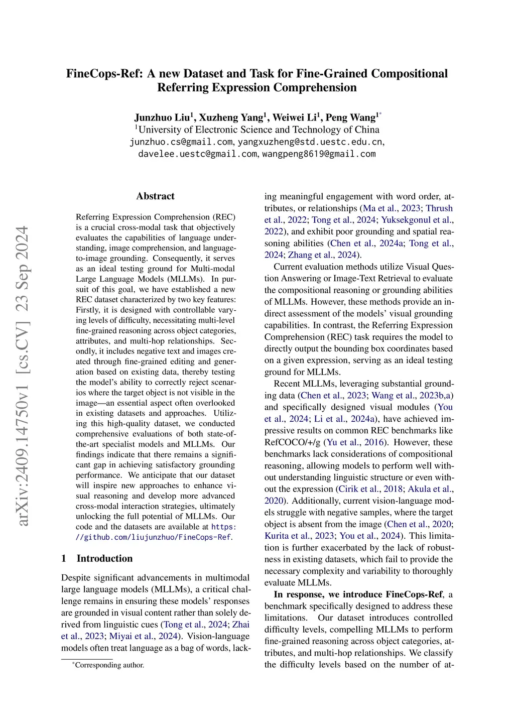 FineCops-Ref: A new Dataset and Task for Fine-Grained Compositional Referring Expression Comprehension
